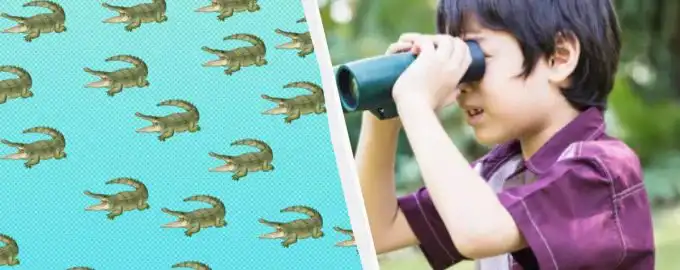 Bilden kan lura även de mest uppmärksamma. Krokodilpussel förvirrar ögat med bakgrund och monotoni / Moje Collage, Moje-foto, foto av depositphotos.