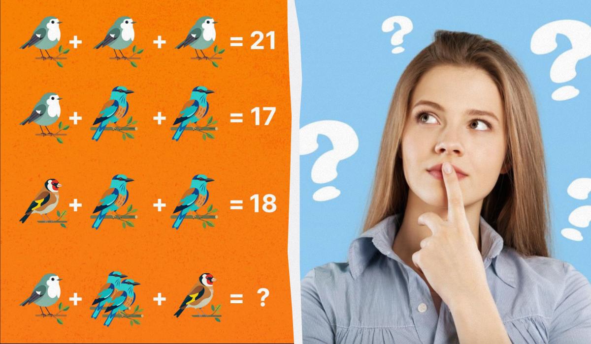 Nedan ser du ett intressant matematiskt pussel där du måste beräkna en viss summa pengargenom att analysera olika fåglar. Varje fågelart står för ett specifikt tal. Läsarens uppgift är att lösa den här gåtan på mindre än 10 sekunder.