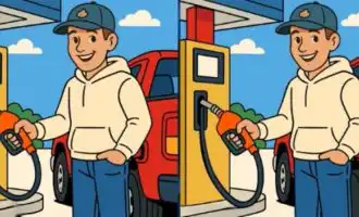 Bilden visar en gård med en brunn, en anordning för att lyfta hinkar med vatten (en kran), en blomsterrabatt, skulpturer och en katt som lurar någonstans. Endast personer med hög IQ kan hitta djuret på 10 sekunder.